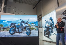 Otwarcie siedziby przy ul. Pułkownika Dąbka 28 połączyliśmy z prezentacją dwucylindrowych maszyn z serii V-Strom 800DE oraz GSX-8S, którą poprowadzili ambasador Suzuki Rafał Jemielita wraz z redaktorem naczelnym portalu Motovoyager.net Michałem Brzozowskim. Frekwencja, zgodnie z oczekiwaniami, była fantastyczna. Nic dziwnego, bo Suzuki ma się czym pochwalić - w tym roku modelowym debiutuje 7 nowości wśród jednośladów, począwszy od oszczędnych i trwałych skuterów kategorii 125 cm3 (Burgman EX, Address i Avenis) przez tzw. nakedy (GSX-8S) po rozbudowaną gamę klasy adventure (V-Strom 800DE, V-Strom 1050 i 1050DE).